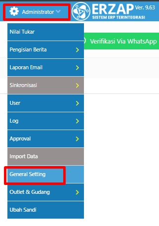1. Masuk ke Menu Administrator, lalu pilih General Setting