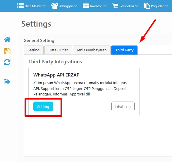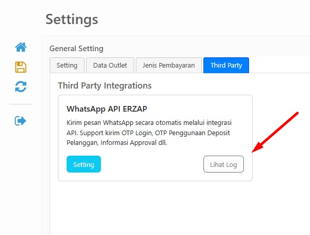 Cek Aktivitas Log dari menu Administrator -> General Setting -> Tab Third Party -> pilih Lihat Log