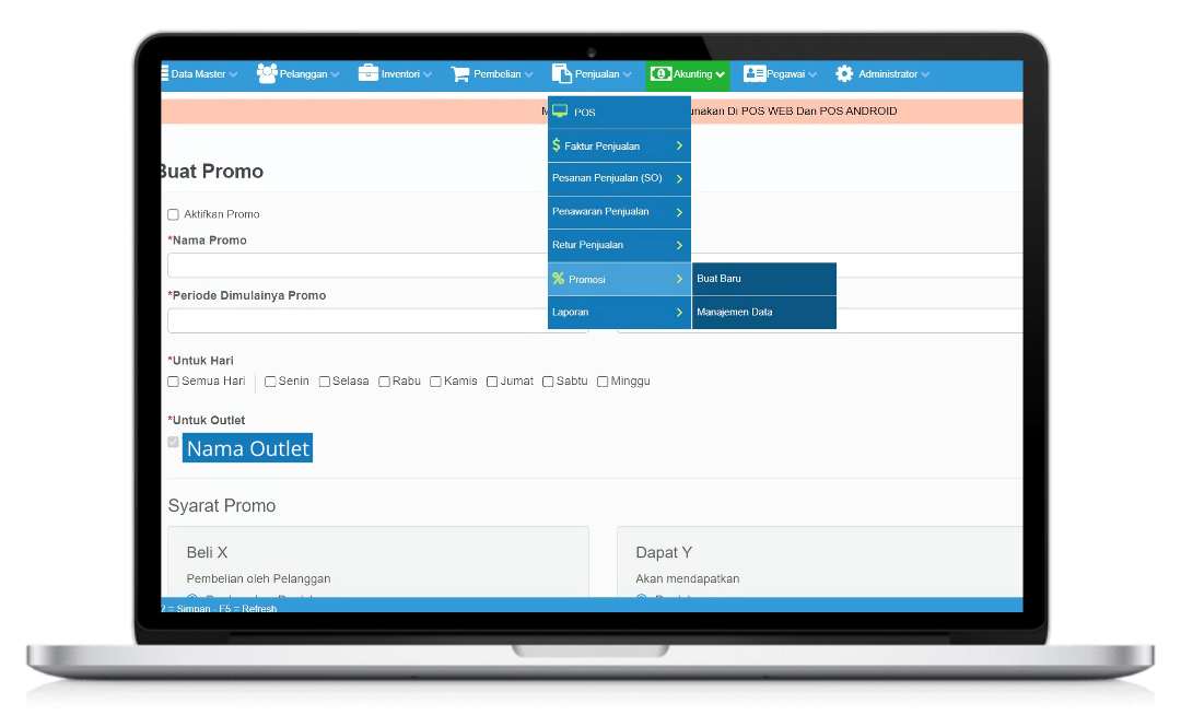 Anda dapat menggunakan Fitur promosi ERZAP untuk mengimplementasikan sales promotion pada bisnis Anda. Fitur tersebut dapat membantu Anda mengatur program promosi secara otomatis sesuai waktu dan ketentuan yang diatur pada bagian setting, terutama untuk program promosi jangka panjang. Anda dapat mengatur seluruh jenis promosi sales promotion di back office ERZAP kemudian promo yang telah Anda atur tersebut akan aktif secara otomatis di mesin POS ERZAP baik Pos Android maupun Web.
