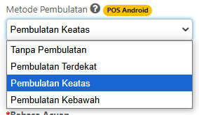 Tersedia tiga metode pembulatan yang bisa Anda pilih sesuai kebutuhan operasional: