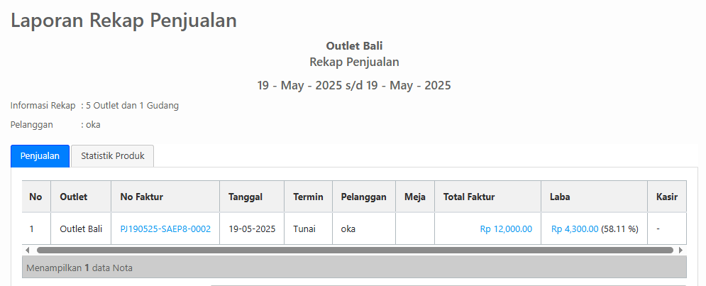 Berikut adalah Laporan Rekap Pejualan yang terbentuk dari penjualan yang terjadi.