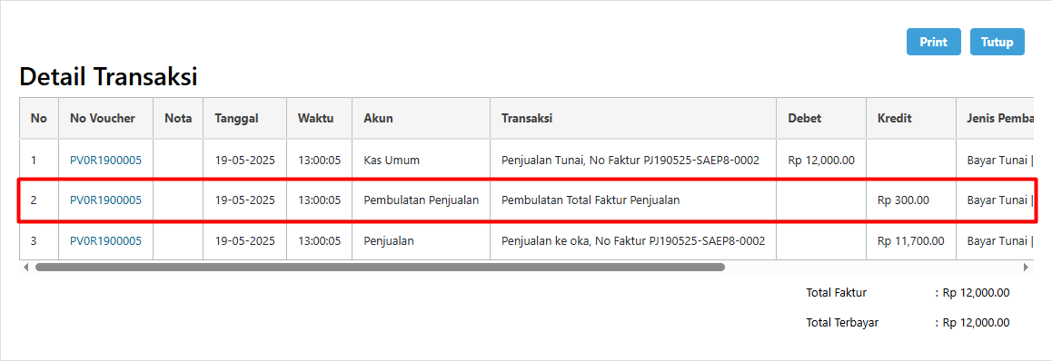 Berikut adalah Detail Transaksi dari Total Faktur, dapat diperhatikan terdapat keterangan pembulatan seperti gambar berikut.