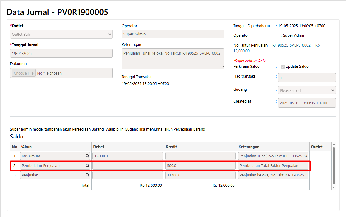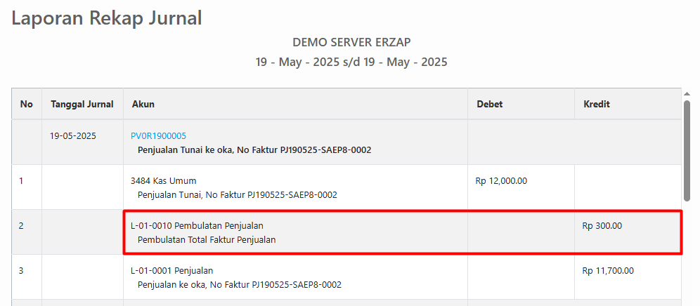 Berikut adalah contoh keterangan pembulatan jika dilihat melalui Laporan Rekap Jurnal.
