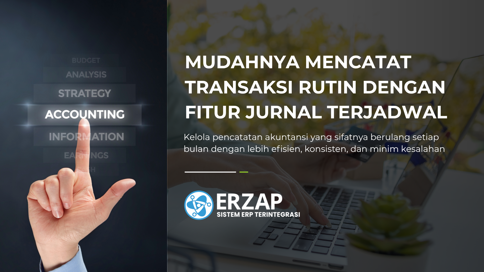 Otomatisasi pencatatan transaksi rutin dengan fitur Jurnal Terjadwal di Erzap ERP. Lebih efisien, konsisten, dan minim kesalahan.